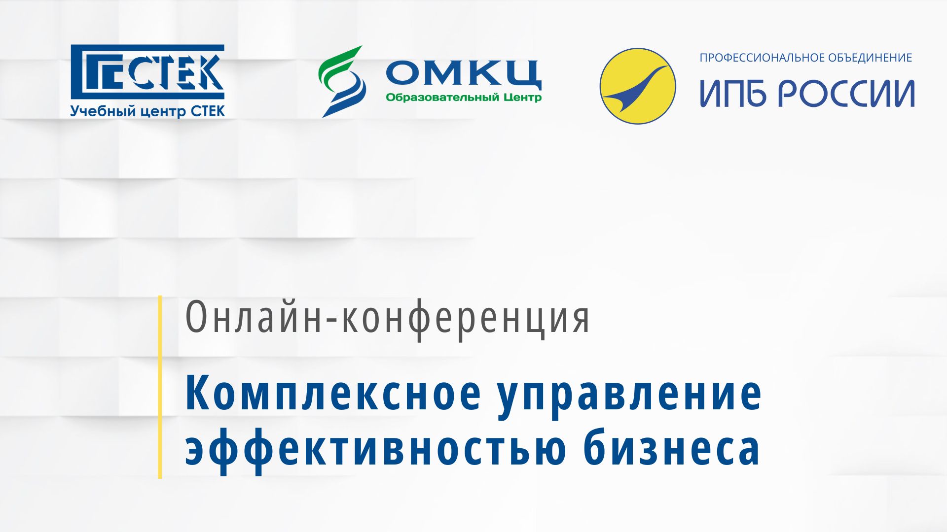 16 сентября ИПБ России совместно с Учебным центром СТЕК (г. Москва) и Образовательным центром ОМКЦ (г. Санкт-Петербург) провел бесплатную онлайн-конференцию «Комплексное управление эффективностью бизнеса».