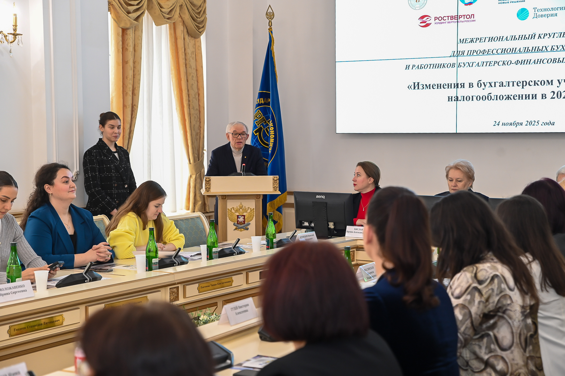 Благодарим ректора Ростовского государственного экономического университета (РИНХ) Макаренко Елену Николаевну, проректора по учебной работе Кислую Ирину Александровну, заведующего кафедрой бухгалтерского учета, президента Ростовского ТИПБиА Лабынцева Николая Тихоновича, генерального директора Ростовского ТИПБиА Нестеренко Нину Александровну и весь коллектив территориального института за организацию и проведение круглого стола, а также за многолетний и плодотворный труд на благо нашей профессии, за большой вклад в дело подготовки, аттестации и повышения профессионального уровня специалистов экономического профиля.
